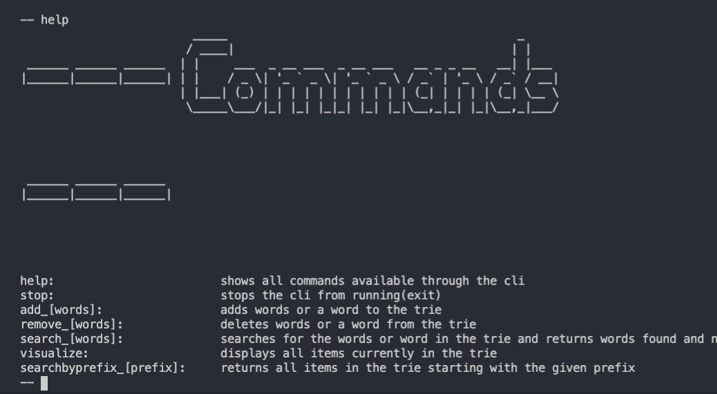 Used the trie data structure to create a usable command line interface with various commands such as add, help, remove, and search. I hosted the project on PythonAnywhere and it can currently be installed through pip.
